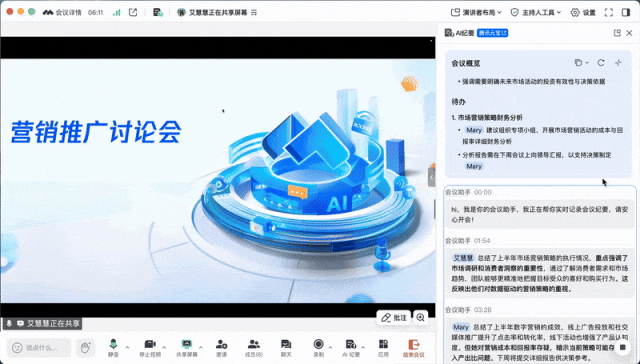 • 让「AI纪要」帮你专门2分钟一次替你总结进度、在旁边悄悄读懂气氛与态度变化、标记待办和责任人,还能跳转元宝继续追问,让任务不再“会议结束就失踪”。